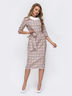 Комфортное платье из костюмной ткани с отложным воротником. Застёгивается на молнию по спинке. Пояс в комплекте. Станет идеальным вариантом для обладательниц типа фигуры «прямоугольник», «песочные часы».