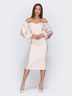 Силуэтное платье-футляр с открытой линией плеч, красиво подчёркивающей ключицы. Изделие с рукавом-буф и эффектным разрезом сзади. Застегивается на молнию. Отлично подойдёт обладательницам фигуры типа "песочные часы" и "прямоугольник".