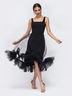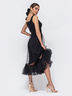 Лаконичное платье с фигурным вырезом горловины и открытой спинкой. Модель отрезная по линии талии, застёгивается на молнию сзади. Расклешенная юбка дополнена воздушным фатином с широкой оборкой по низу. Модель отлично подойдёт обладательницам фигуры "песочные часы", "груша" и "перевернутый треугольник.