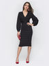 Облегающее платье с широкими рукавами на манжетах и лифом на фиксированный запах. Широкий втачной пояс акцентирует линию талии. На юбке сзади предусмотрена шлица. Модель застегивается на молнию сзади.