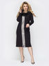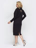 Черное платье прямого кроя с воротом хомут и длинным рукавом реглан. Сзади разрез.