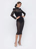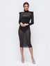 Эксцентричное платье-миди из мягкой трикотажной сетки с напылением. Изделие с эффектным вырезом на спинке, дополнено вшитым боди и плечевыми накладками. Застегивается на молнию сзади. Отлично подойдёт обладательницам фигуры "песочные часы" и "прямоугольник".