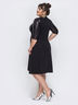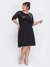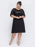 Стильное платье-трапеция с рукавом 3/4. Кокетка выполнена из блестящих пайеток. Модель отлично скроет незначительные недостатки фигуры и подчеркнет ноги.