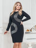 Силуэтное платье из креп-дайвинга с длинным рукавом. Изделие декорировано вставкой из мерцающих пайеток на полочке. Застегивается на пуговицу сзади. Модель выигрышно обыгрывает нюансы фигуры за счёт замысловатого узора, визуально вытягивая силуэт.