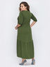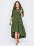 Универсальное платье А-силуэта из двунитки с удлиненной спинкой. Изделие украшено небольшим горизонтальным разрезом в зоне декольте. Отлично скроет недостатки фигуры любого типа.