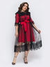 Коктейльное яркое платье свободного кроя из костюмного крепа. Модель украшена ажурным кружевом по горловине и подолу. Широкий пояс из основной ткани в комплекте. Застегивается на молнию сзади.