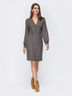 Повседневное платье приталенного силуэта с V-образным вырезом горловины. Изделие дополнено декоративными пуговицами. Застёгивается на потайную молнию по спинке. Хорошо подойдёт обладательницам типов фигуры «песочные часы» и «прямоугольник».