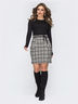 Комбинированное платье приталенного силуэта с длинным рукавом. Верх изделия выполнен из мягкой вискозы, низ – из трикотажа в крупную клетку. Пояс в комплекте. Отлично подойдёт обладательницам фигуры типа "песочные часы" и "прямоугольник".