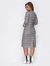 Стильное платье приталенного силуэта из костюмной ткани в клетку. Оригинальности изделию придаёт яркая вставка на полочке, в тон лентам на поясе. Хорошо подойдёт обладательницам фигуры типа "прямоугольник", "песочные часы".