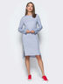 Практичное платье в стиле casual с разрезами и трехцветной тесьмой сбоку. Для удобства в швах предусмотрены карманы. Без застежек.