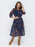 Платье-миди из шифона с отложным воротником, отрезное по талии, мягкие складки на юбке и карманы в боковых швах. Застегивается на пуговицы по полочке. Рукав с отворотом и патами, зафиксированными пуговицами. Съёмный пояс, из основного материала, в комплекте. На подкладке.