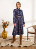 Платье в романтическом стиле с воротником-стойкой, переходящим в красивый бант. Предусмотрена эластичная деталь в поясе и манжетах. Пояс в комплект не входит. Изделие хорошо подойдёт обладательницам фигуры "груша" и "яблоко".