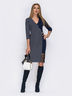 Оригинальное платье на ложный запах из французского трикотажа. Модель выполнена сочетанием тканей двух цветов, геометричный разрез сбоку дополнен ажурным гипюром. Идеально подойдет обладательницам типов фигуры «прямоугольник» и «песочные часы».