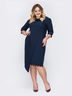 Лаконичное платье приталенного силуэта из костюмной ткани с кружевом. Изделие с асимметричным низом и глубоким V-образным вырезом на спинке. Хорошо скроет незначительные нюансы фигуры и подчеркнет ноги.