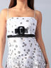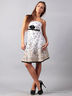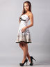 Модное женское платье без бретелей. Молния на спине, юбка расклешенная, под грудью большой бант из того же материала с глянцевой пряжкой.