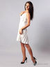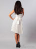 Шикарное атласное женское платье с открытой спиной. Лямки-завязки за шеей средней длины, область декольте с V-образным вырезом, ткань собрана в складки, под грудью ткань в горизонтальную сборку, юбка вся в вертикальную мелкую складку, на талии сзади тонкие завязки, слева линия талии украшена блестящей вставкой-брошью. Что, как не выбор платья может рассказать больше о вкусе, стиле и образе жизни молодой дамы.