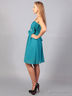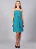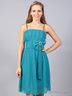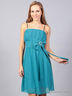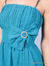 Великолепное женское платье на узких бретелях. Спереди бретели в виде цепочки со вставленными камнями, область груди в узкую вертикальную складку, под грудью горизонтальная полоска и слева на ней вставка из бантика, украшенного стразами, юбка свободная, летящая. Платье с подкладкой, на талии на спине завязки.