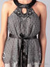 Восхитительное женское платье. Спина открытая, область декольте закрыта, на шее атласная завязка на пуговичках, область декольте, переходящая в завязки расшита нитками (узоры) и украшана крупными стразами, тонкий атласный поясок, платье с подкладкой.