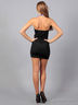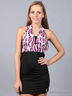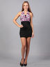 Восхитительное женское платье с американской проймой. Лиф-треугольнички цветной, от груди чёрная юбка-клёш, платье отрезное по линии талии, спина приоткрыта.