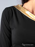 Утонченное женское платье с длинным рукавом. Грудь полностью закрыта, область таза в платье обтягивающая, вырез декорирован отделочной тканью.