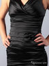 Строгое женское платье на широких лямках. Чуть ниже колена, в стиле платья-карандаш, V-образный вырез на груди, молния на спине, все платье в горизонтальные складки.