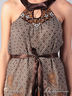 Восхитительное женское платье. Спина открытая, область декольте закрыта, на шее атласная завязка на пуговичках, область декольте, переходящая в завязки расшита нитками (узоры) и украшана крупными стразами, тонкий атласный поясок, платье с подкладкой.