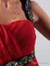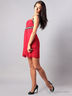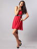 Коктейльное платье на одной лямке. Лямка на левом плече, вшитые чашечки для груди, горизонтальная линия под грудью и лямка выполнены в черном цвете и расшиты бисером и мелкими металлическими кругляшками, платье расклешенное, с подкладкой.