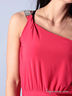 Восхитительное коктейльное платье с оголенным левым плечом. На правом плече вместо лямки вставка из серебряных металлических переплетенных цепочек с камушками в тон, юбка по бокам собранна.
