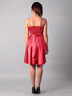 Восхитительное женское платье на узких бретелях. Длина чуть ниже колена, на спине вставка из широкой резинки, ткань на груди в косую узкую складку, на талии большой бант, украшенный металлической вставкой со стразами, под бантом атласные ленты для завязки на спине.