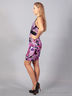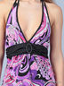 Броское женское платье, зауженное книзу. Платье без рукавов, глубокое V-образное декольте, под грудью чёрная вставка с декоративной пряжкой.