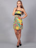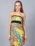 Пестрое женское платье без бретелей. Под грудью вставка, оригинальный яркий принт, спина открытая, отрезное по линии талии.