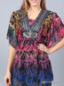 Оригинальное двухслойное шифоновое платье. Легкие рукава кроя "летучая мышь", горловина украшена широкими лентами, расшитыми пайетками и стеклярусом, сходящимися под грудью.