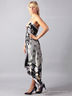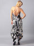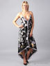 Роскошное женское шелковое платье, на тонких бретелях, спина открыта, под грудью завязки, длина юбки разная.