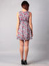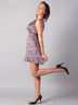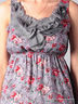 Легкое короткое женское платье. Широкие лямки, круглый вырез, вырез украшен тканевыми тонкими "лепестками" в цвет к платью, на талии вшита тонкая резинка, низ юбки - с рюшами из того же материала.