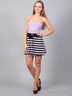 Новомодное женское платье без бретелей. Вшитые чашечки, на спинке резинка, юбка клёш, топ присобран, платье отрезное по линии талии, шлевки под пояс, пояс в комплекте с вставками из кожи, с бляшкой декорированной стразами.