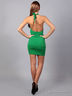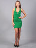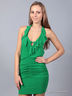 Модное женское платье с глубоким вырезом. Вырез с перемычками со стразами, спина открыта, платье облегающее, внизу по бокам сборка.