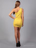 Элегантное женское платье с лямкой на одно плечо. На правом плече узелок, по бокам сборка, длина мини-юбки.