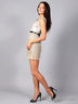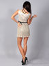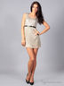 Изощренное женское платье на широких лямках. С талии начинается легкая расклешенная юбка в мелкую складку, под юбкой подкладка, вставка из узкого черного кожаного ремешка на талии.
