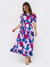 Летнее платье-макси с открытыми плечами. Модель А-силуэта с поясом из основного материала.