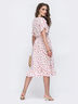 Струящееся платье из принтованного софта с кулиской в поясе и рукавами-воланами. Расклешенная юбка дополнена воланом по подолу. Застегивается изделие на ряд пуговиц спереди.
