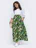 Длинное льняное платье с принтованной юбкой. В боковых швах предусмотрены карманы.
