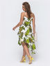 Стильное платье из принтованного штапеля с американской проймой. Узкие бретели регулируются. Расклешенная юбка с асимметричным подолом, дополнена широким воланом. В поясе предусмотрена эластичная деталь. Тканевый пояс в комплекте.