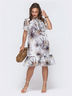Романтичное платье-трапеция из воздушного шифона в красивый цветочный принт с воланом по низу. Треугольный вырез горловины, дополнен широкими завязками, преходящими в бант. В комплекте съёмное платье-комбинация на узких регулируемых бретелях.