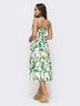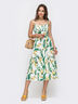 Летящее платье с цветочным принтом на узких регулируемых бретелях и широким воланом по низу. Широкая вставка на талии придаёт силуэтности. Для комфортной посадки по фигуре в центральной части спинки вафельная сборка на резинку. Сбоку скрытая застежка-молния.