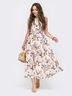 Женственное платье без рукавов из струящегося софта в красивый цветочный принт. Модель отрезная по талии с расклешенной юбкой. Застёгивается на скрытую молнию сбоку. Пояс из основной ткани в комплекте.