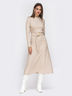 Расклешённое платье из приятного к телу трикотажа. Изделие с воротником-стойкой и рукавом-реглан. Пояс с пряжкой в комплекте. Отлично подойдёт обладательницам фигуры типа "песочные часы" и "прямоугольник".