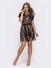 Двухслойное платье прямого кроя из трикотажного полотна. Верхний слой фатина с узором выложен пайетками. Тканевый пояс в комплекте.