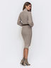 Облегающее вязаное платье с удлиненной спинкой. Модель с воротником-стойкой и широкими рукавами на манжетах.