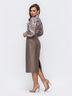 Оригинальное платье-футляр с юбкой из искусственной кожи. Верх изделия выполнен в рубашечном стиле из легкого софта в флористический принт. Застегивается на молнию сбоку. Отлично подойдёт обладательницам фигуры типа "песочные часы" и "прямоугольник".