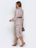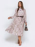 Платье в романтическом стиле с воротом-стойкой, переходящим в красивый бант. Рукав собран в резинку. Силуэтности изделию придаёт эластичная тесьма в поясе. Хорошо подойдёт обладательницам фигуры "груша" и "яблоко".